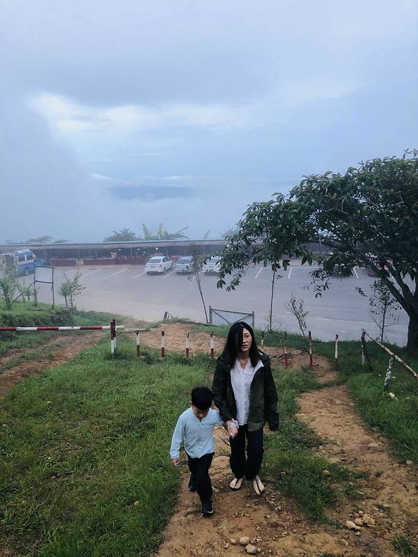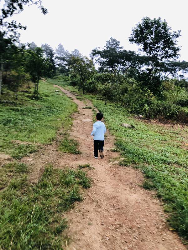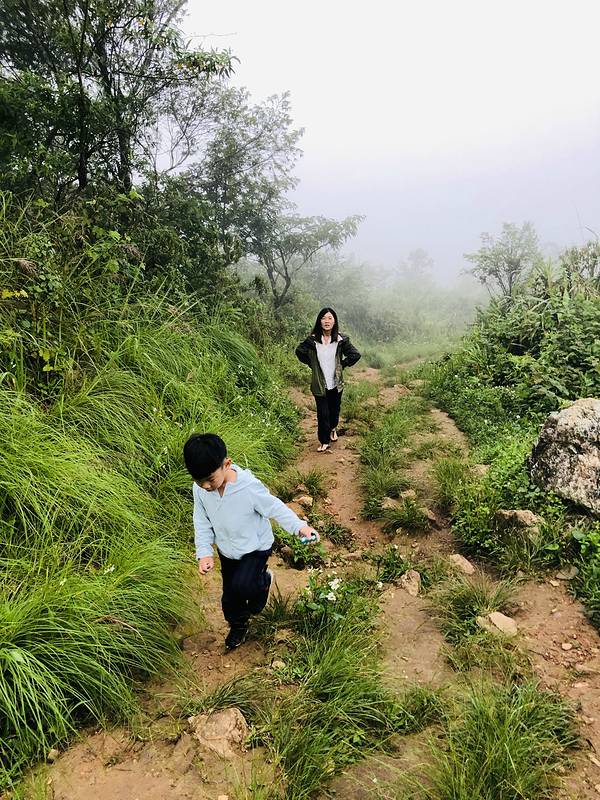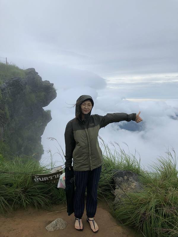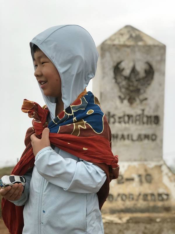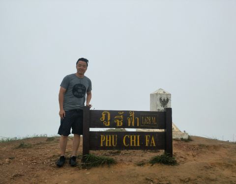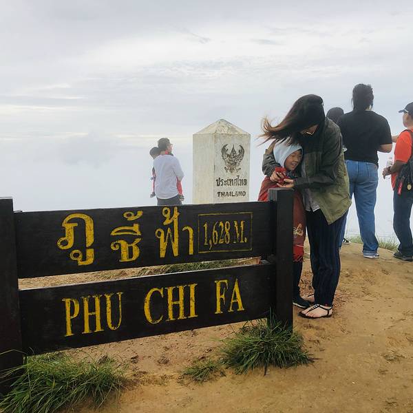 4:17分开车出发长途之前补充足够的燃油是必须的,加满!!6.51元每升,便宜啊。我们的小尼桑一路上基本都游刃有余,后段开始爬山,最大坡度有15%,刚开始没理解L档啥意思,挂着D档使劲踩油门,都要踩进油箱咯,爬坡时速只能达到30km/h。等我们回程下坡时,才看到路牌上写着keep low gear,才反应过来,L档是低速挡,爬坡应该用这个档就不会发生我们之前的情况了。哈哈,自嘲一下6点开车抵达停车点,还有790m需要徒步,穿上御寒的衣服就上去了,有位美女穿着凉鞋就上了。徒步路面不是很平整,小朋友还需要适应一下适应后,马上越走越快了超过我们了看到老鹰嘴了吗?即将登顶!!Phu Chi Fa是老挝和泰国国界,海拔1628m,风很大,主要来自泰国一面,西风,小朋友已经把所有能披上的都上身了。车车不离手,你知道你随便一跳就跨国界了吗?先来一张泰国界碑面再来一张老挝界碑面,一步就跨国界啦,一会儿泰国,一会儿老挝。哈哈泰国历2557年-2019年,年历差538年担心小朋友受不了,来一个肉夹馍,脸都被挤变形了。山上雾大,看看地图吧如果天气好,可以俯瞰整个老挝,与老挝的琅勃拉邦在同一经度上老挝侧有个下坡,我们找到这里休息,算背风坡,温暖多了露出了老挝的山脊云雾后面,太阳正在升起玩点刺激的,下面可是老挝的万丈深渊悬案No Zuo No Die影影约约能看见悬崖底部老挝的村落下来到停车区,遇见三个当地小朋友,放着泰国民间音乐,随着音乐跳着舞。(跟国内马路上乞讨的小朋友类似,最后都要上缴给背后的成人,不过看着比较开心)@ PHU CHI FA这样宽广的山顶,必须喊上两嗓子借着朵朵白云和起伏山峦为背景,与小尼桑来个合影吧还没跟小尼桑合影呢,非常不错若有所思山下的民宿,天气好的时候确实不错从山顶出发直接赶回清迈,经过汤县、甫桑县、尊县、帕尧县、汪粮县, 开5个半小时,路程282Km。