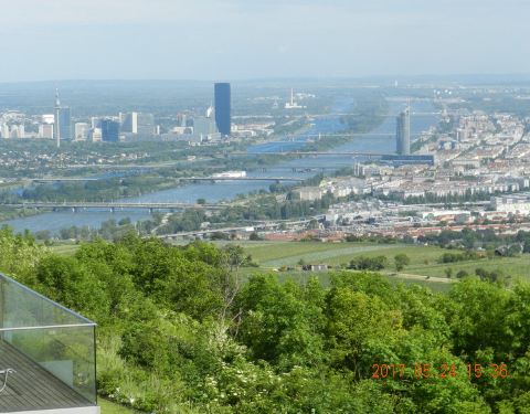 ...山顶,维也纳整个城市尽揽脚下,左侧是弯曲的多恼河,如果有时间,在阳光明媚的时候,一定请登顶看看