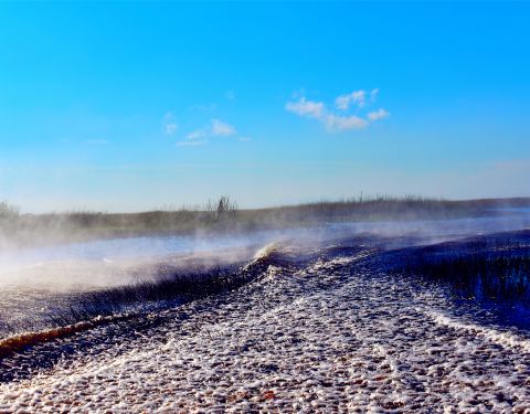 ...南部尖角位置,6英寸深、50英里宽的淡水河缓缓流过广袤的平原,因而造就了这种独特的大沼泽地环境