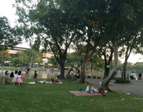 曼谷的一座比较大的城市公园,公园免费开放给市民。傍晚假期会有很多市民在公园席地而坐,野餐