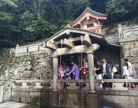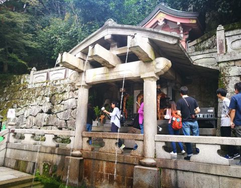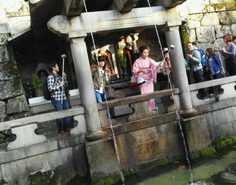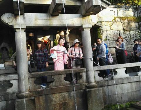 清水寺的一个特色体验项目,据说流下来的水能够祈福治病,这里需要排队取水清水寺的一个特色体验项目,据说流下来的水能够祈福治病,这里需要排队取水。不过不能太贪心,选一个喝就行了。