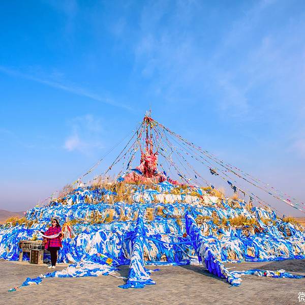 乌兰布统景区内的一个景点,离影视基地不远。一个大大的敖包,比一般的敖包大了好几圈。附近有辽阔的草原,远方有起伏的山峦,视野开阔,赏心悦目。