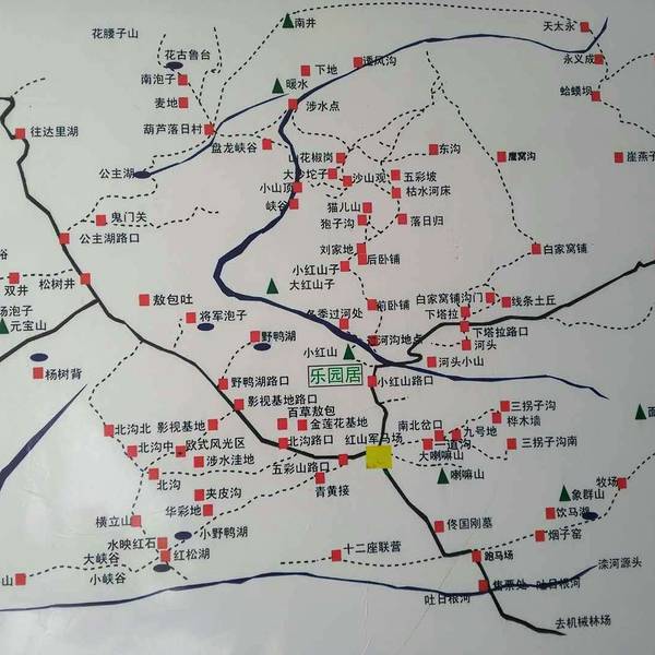 百草敖包”用石二十五万块,标志全旗二十五万人民团结一心。 左右无其他去处,怕赶上路上的大拥堵,早上8点就出发了,路过百草敖包,下车转了一圈,百草敖包是上万块的石头垒成,象征乌兰布统人民团结一心。靠近敖包旁边停靠一辆轿车,后备箱打开着,老板叫卖着奶制品,相比商店便宜了一半,老板解释说是厂家倒闭,库存处理,品尝了一下,和商店买的味道相差无几,随即买了些。零食在手,小家伙安分了很多。 回程早上9点到晚上19点,用了今近12小时,途径几个绝美景点,好过五彩山不知多少倍,属于未开发地区,漫山遍野的彩页树木,一眼望不到边际,就是山路狭窄,大车无法停靠,应了那句话,“最美的风景在路上”。 回来总结这次出游: 以自己之私念,不考虑娃娃情况,让娃受了不少罪,回来后又感冒了,主要是出游前身体刚刚见好一阵子,回来后的数月又连续感冒了好几次,让自己深深的自责,三思而后行,考虑同行人的感受,尤其是老幼病。谨记! 旅游的意义何在,让自己和家人健康、开心是最重要的 当地旅游图