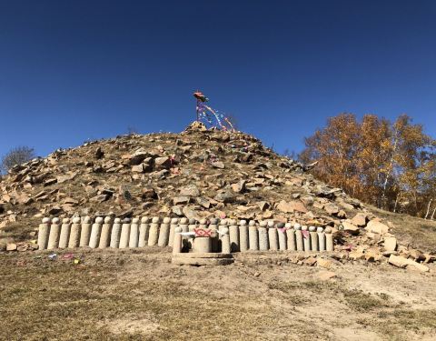 敖包在草原上非常漂亮,引人瞩目