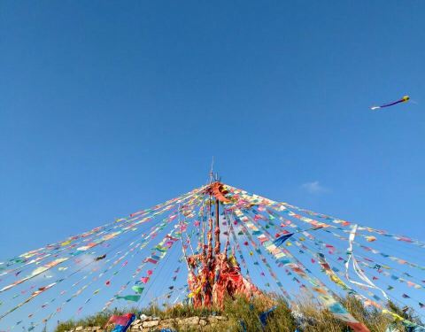 ...上,人们用石头堆成的道路和境界的标志,后来逐步演变成祭山神、路神和祈祷丰收、家人幸福平安的象征