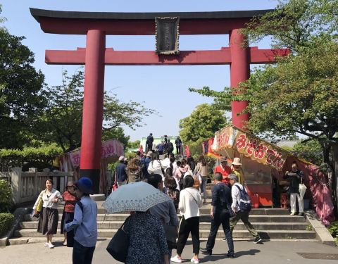 每年4月中旬到5月上旬紫藤花花,吸引了众多的游客前来观赏在东京龟户站与锦丝町站之间。该神社规模不是很大,但神社内的紫藤树比较有名。每年4月中旬到5月上旬紫藤花花,吸引了众多的游客前来观赏。