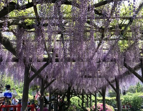 龟户天神社是有名的赏藤胜地,有「东京第一赏藤胜地」之美称,以其花朵的长度达到一米多而著称,这紫...