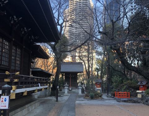 在中央新宿公园内,是个很小的神社,来回经过公园的上班族会顺便在这里一拜,算是让神灵保证一天顺利
