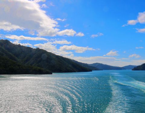库克海峡链接新西兰南北岛,惠灵顿与皮克顿。乘坐海轮,使你在旅行中多一次海轮航行的体验。无边无际的大海,海天茫茫的天际线,使人顿觉心比天高,胸怀比海阔。天蓝蓝,水蓝蓝,白云连接天与海,此情此景可以把...