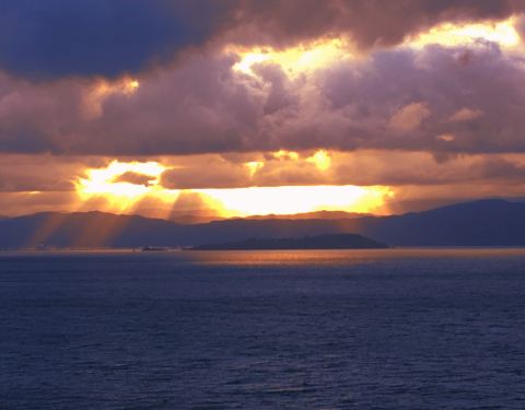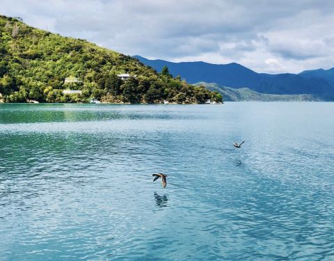 库克海峡位于南岛和北岛之间,看似不太宽阔的海峡却不平静,由于海峡同时也是连接塔斯曼海河太平洋的水道,这里的水流还是很急的,从皮克顿到惠灵顿乘船过程中也可以看到两边海水颜色的不同。