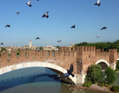 许多反映维罗纳风貌的摄影作品有此桥的身影。战后由市民集资重建。