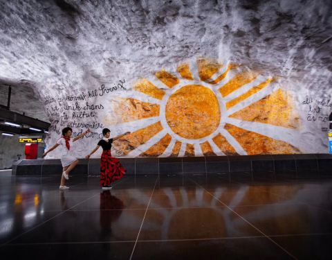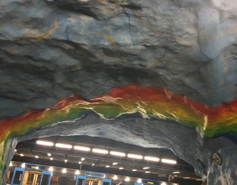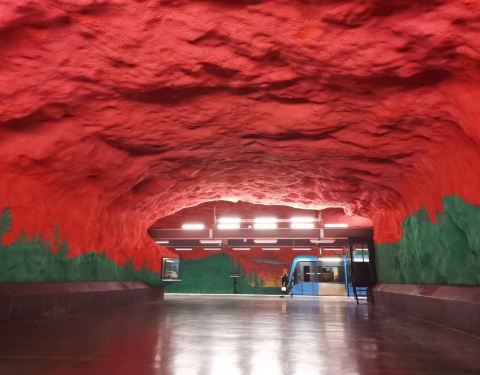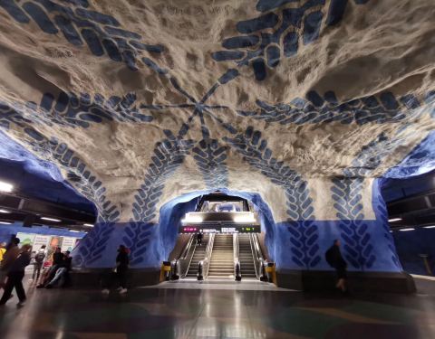 也是斯德哥尔摩最为繁忙和最漂亮的地铁站的地铁站,里面的装修融合了古文化和现代艺术,很漂亮,很多人打卡