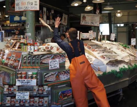派克市场已经成为西雅图一个知名景点。派克市场里必看的节目就是著名的抛鱼表演,我们也有幸看到了派克市场已经成为西雅图一个知名景点。派克市场里摊位很多,除了海鲜,还有水果、鲜花、工艺品和餐厅,成为很多游客到西雅图必打卡的地方。派克市场里必看的节目就是著名的抛鱼表演,我们也有幸看到了。市场里的...派克市场已经成为西雅图一个知名景点。派克市场里摊位很多,除了海鲜,还有水果、鲜花、工艺品和餐厅,成为很多游客到西雅图必打卡的地方。派克市场里必看的节目就是著名的抛鱼表演,我们也有幸看到了。市场里的鲜花特别漂亮,颜色鲜艳,有的品种以前没有见到过。不买东西来这里逛逛也很有意思。 展开