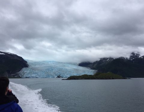在Kenai国家公园里面,需要坐船才能看到,很震撼的冰川,还能听到冰川掉落的声音,游客们都非常兴奋,靠近冰川的时候很冷,风也比较大,穿厚实一些。