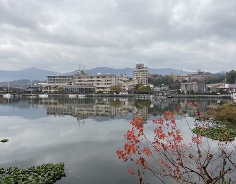 雄琴温泉是琵琶湖畔最为热门的温泉胜地,离京都搭乘JR只需要二十来分钟的时间,非常的方便。但也因为离京都很近,所以这里的温泉酒店都相当的热门,我大概提前了三个月预定,选择都十分的有限。不过最后预定成功的汤元馆还是非常让人满意的,早餐和晚餐,都是精致到让人赞叹。离琵琶湖步行大约不到10分钟的时间,秋天的时候,湖畔的红叶还是很美的。