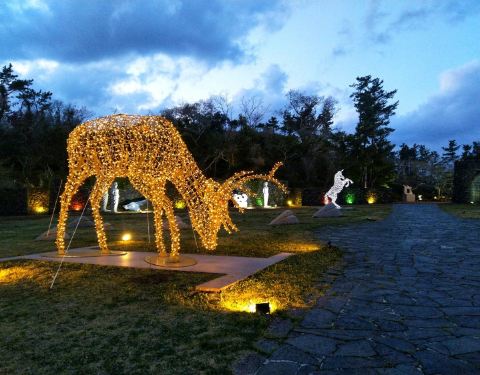济州雕刻公园是很大的一个公园,散步,运动的好地方~这里有很多造型奇特的雕刻品,据说都是名师大作。占地面积约13万平方米,是一个综合性的艺术中心,展出着160多件雕刻作品。济州雕刻公园正门馆入口处种有70年的夏桔树,令人立刻感觉到济州的风土味,也为公园平添了几分韵味。公园正门入口处有一座三角塔,这是雕刻公园的象征,在不同的位置或是不同的天气中看塔,塔身玻璃中的影子都会有所不同。这里展出了160多件雕刻作品,主题是自然和艺术的相会以及自然与人的相会。公园内有瞭望台,可远眺山房山、汉拿山以及国土最南端的马罗岛。这里还举行各种演出,并有各种服务设施,在欣赏作品后可在此愉快地休闲。