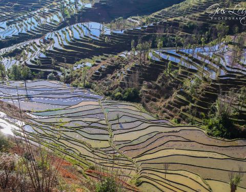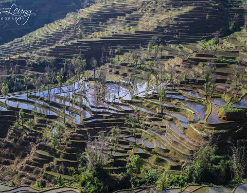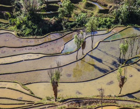 因为梯田之中种着许多杨柳而叫做“杨柳梯田”,当地又叫“柳树梯田”。整篇梯田黄色系居多,给人感觉悲壮苍凉,是另一道靓丽的景色