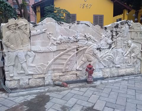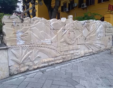 同盟会的河口起义纪念馆就在中越铁路大桥边上,在通关大厅的东面,黄式的房子加上外面的墙雕和物品展示,很是有点古色古香的味道。