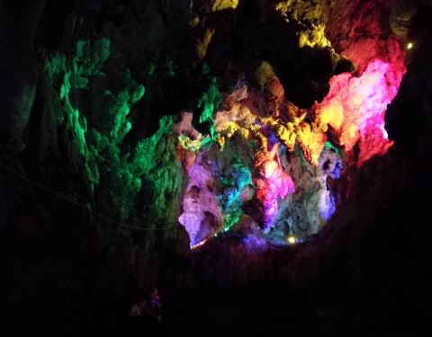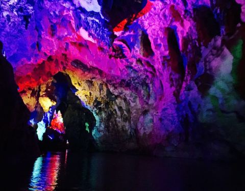 湯那洞是從垻美村出來後的最後一段水路,溶洞裡裝上了炫麗的燈光,真是美呆了,一定要去哦⋯⋯