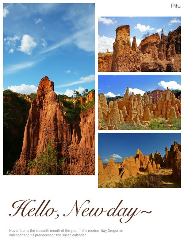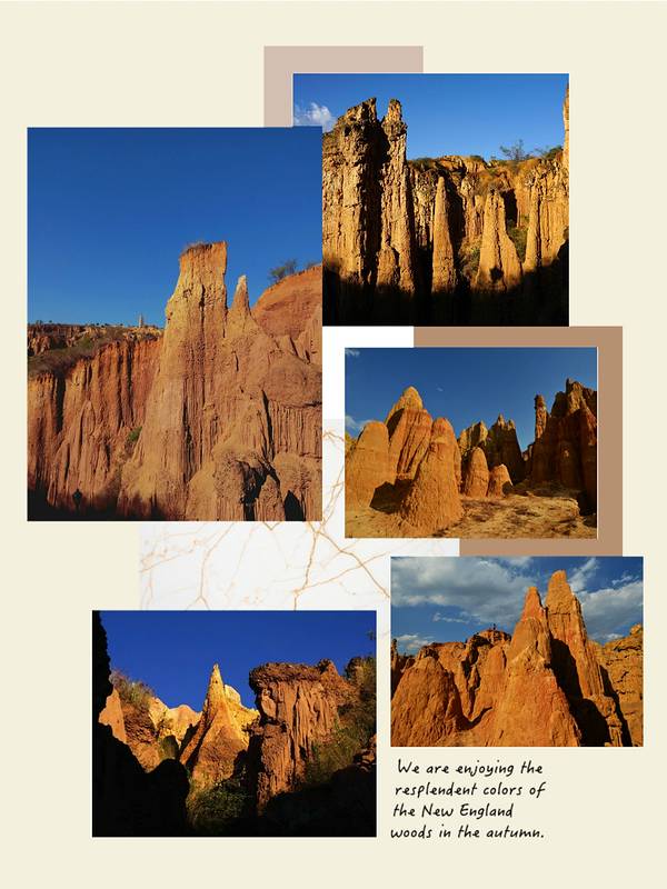 一会儿钻进了深不可测的洞穴,一会儿走进幽暗狭窄的谷底,一会儿又登上巍峨险峻的高峰走进这大自然的艺术魔宫,沿着崎岖蜿蜒的小路在土林中漫游。一会儿钻进了深不可测的洞穴,一会儿走进幽暗狭窄的谷底,一会儿又登上巍峨险峻的高峰。穿越其间,只见满眼的奇峰千姿百态,异柱耸立,纵横相连的沟壑...走进这大自然的艺术魔宫,沿着崎岖蜿蜒的小路在土林中漫游。一会儿钻进了深不可测的洞穴,一会儿走进幽暗狭窄的谷底,一会儿又登上巍峨险峻的高峰。穿越其间,只见满眼的奇峰千姿百态,异柱耸立,纵横相连的沟壑深谷隐现于这片土地之上。土林在不同角度给人以不同的感觉,即使在同一个角度,一年四季给人的联想也会各有不同。