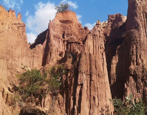 只需一眼,便被惊艳到了,细细品味后,强烈的震撼感萦绕心头念念不忘走进这大自然雕塑的艺术魔宫,沿着崎岖的小路在土林中漫游。一会儿钻进了深不可测的洞穴,一会儿走进幽暗狭窄的谷底,一会儿又登上巍峨险峻的高峰。群峰峥嵘,姿态万千,整个土林奇观尽收眼底。