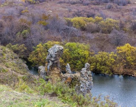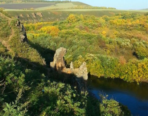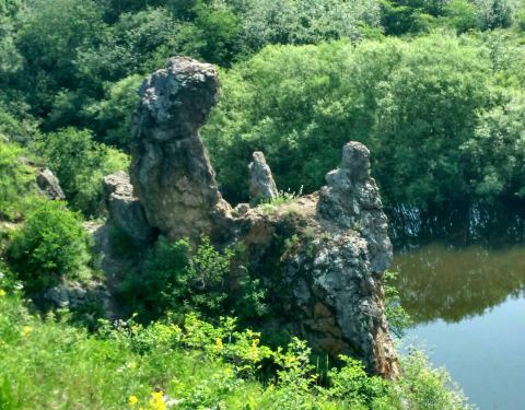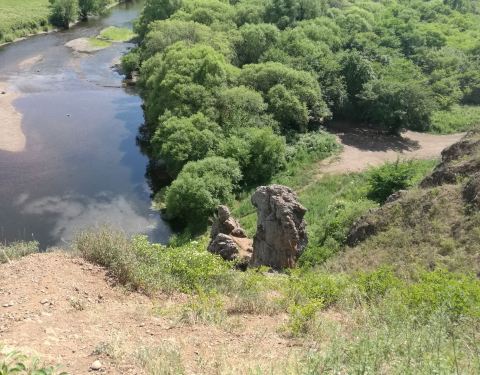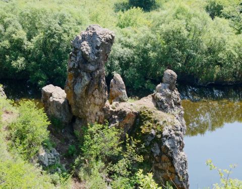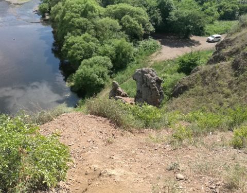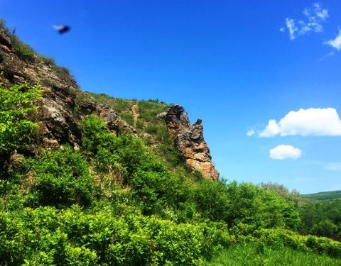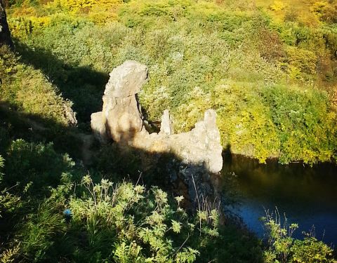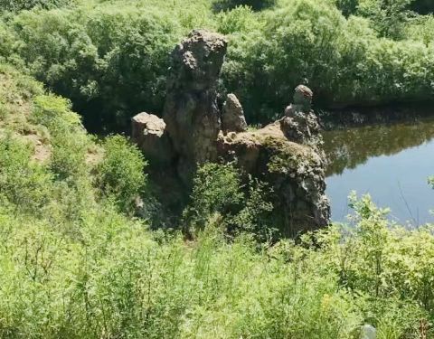 那里景色也是非常美,有两块岩石凸出于类似悬崖峭壁边,远看像2只老鹰一样那里景色也是非常美,有两块岩石凸出于类似悬崖峭壁边,远看像2只老鹰一样。周围有麦田有油菜花地有草地有树林有灌木,峭壁下是蜿蜒曲折的河流。