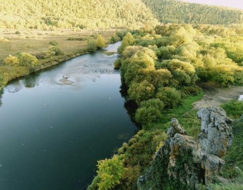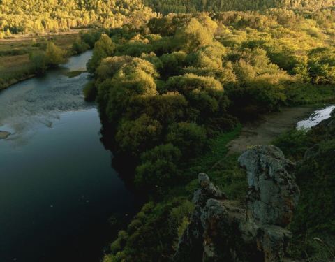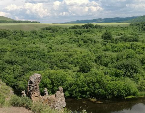 周边是连绵起伏的山峦,郁郁葱葱的灌木,蓝天白云,涓涓流水,入镜入画的景色位于额尔古纳市莫道尔嘎镇太平村附近,秀丽的河流边有一块石头,形似张开嘴吧的老鹰,故名。周边是连绵起伏的山峦,郁郁葱葱的灌木,蓝天白云,涓涓流水,入镜入画的景色。