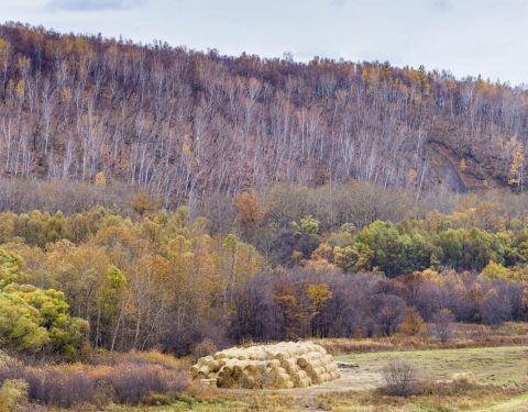 在江边拍够后就出发,今天目标是赶到莫尔道嘎住。临江出来最近的一个点是老鹰嘴,从村里到老鹰嘴这段路不长,但处处是风景。 草卷又来了,小军说这草卷是先用除草机把打割了,然后再用专门的卷草机卷成的,卷草的...
