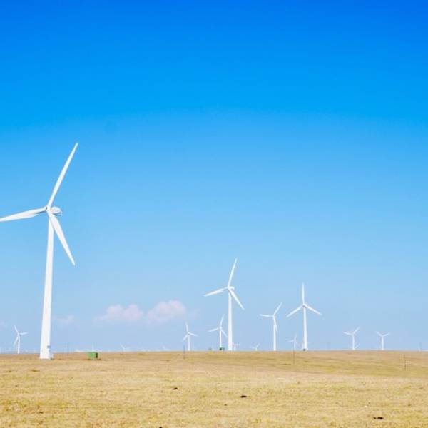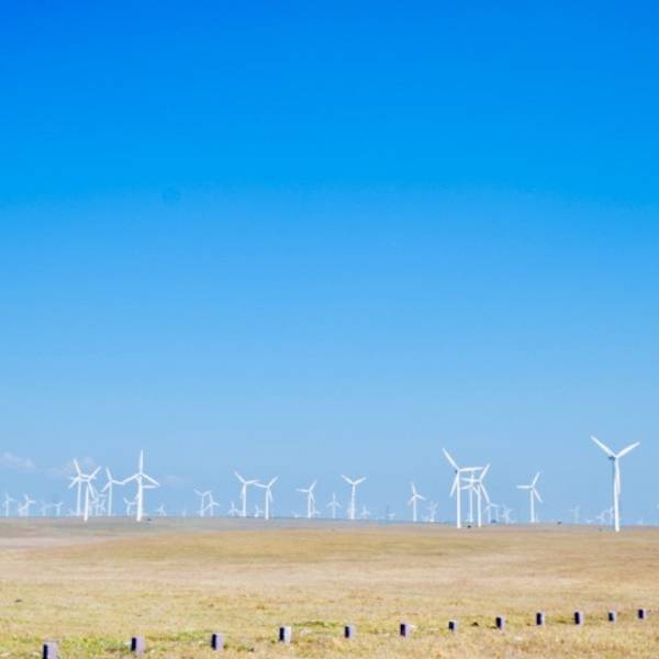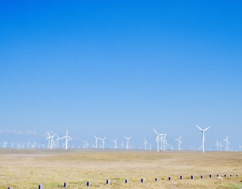 尤其是在草原上,辽阔的空地上,一整排一整排的白色风车很漂亮,也很梦幻
