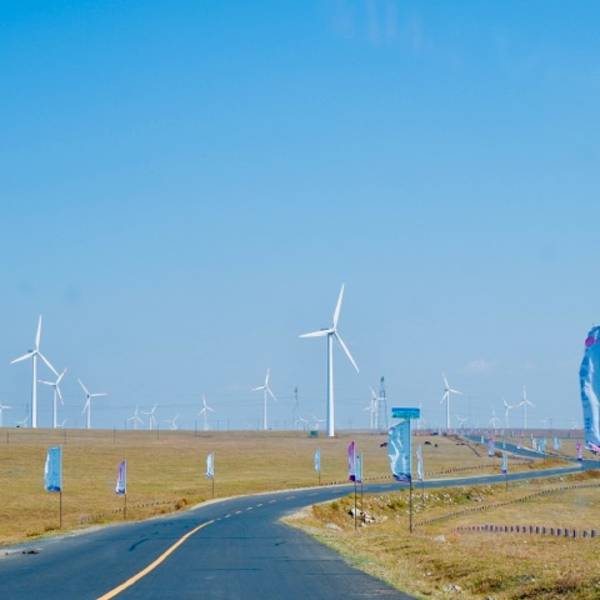 据说风机转一圈就是一度电,蓝天,白云,大草原,风力发电机,牛群,羊群满山坡,这地方真的很惬意这里是亚洲最大的风力发电场。据说风机转一圈就是一度电,蓝天,白云,大草原,风力发电机,牛群,羊群满山坡,这地方真的很惬意。
