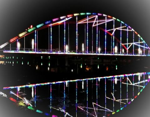 彩虹桥是莱西最美的桥之一。。白天他威武壮观,方便潴河两岸人民,晚上他霓虹闪烁,璀璨夺目多彩多姿。。。