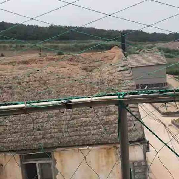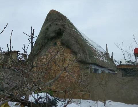 在原始石块或砖石块混合垒起的屋墙上,有着高高隆起的屋脊,屋脊上面是质感蓬松、绷着渔网的奇妙屋顶