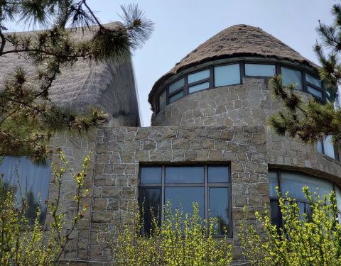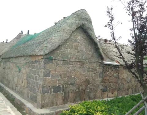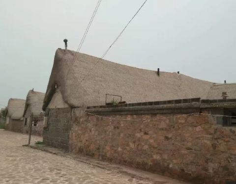 在原始石块或砖石块混合垒起的屋墙上,有着高高隆起的屋脊,屋脊上面是质感蓬松、绷着渔网的奇妙屋顶。这就是极富地方特色的民居——海草房。当你走进山东省的渔村,就可以看到这些以石为墙,海草为顶,外观古朴厚拙,极具地方特色的宛如童话世界中草屋的民居。转自百度
