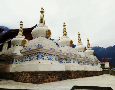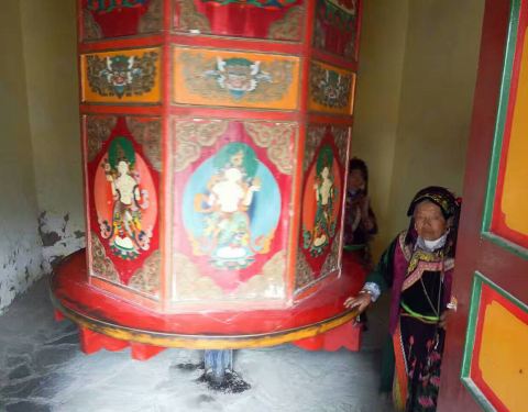 宝殿寺现在的规模很小,当天我是唯一到访的游客。没有香火缭绕和人声鼎沸,只有壮观的白塔,清雅的佛堂,清代的壁画,沉默的喇嘛和虔诚的香客.....安详地诉说着这里的前世和今生。同行的藏族司机,语气中带着遗憾讲述着当年张国焘南下自立中央,与寺中喇嘛兵发生激战受挫,懊恼地下令杀光寺中的喇嘛,摧毁了这间川西藏区规模宏大的喇嘛庙的故事。而我听后的感想,只是想不停地默念:“唵嘛呢叭咪吽”……