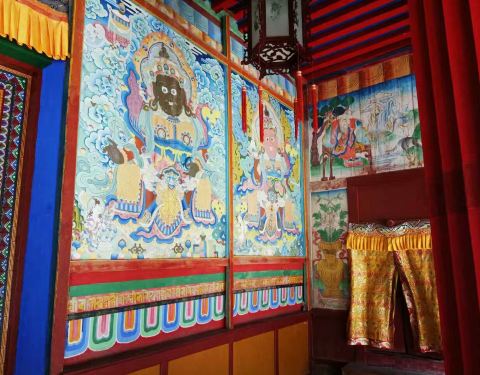 宝殿寺现在的规模很小,当天我是唯一到访的游客。没有香火缭绕和人声鼎沸,只有壮观的白塔,清雅的佛堂,清代的壁画,沉默的喇嘛和虔诚的香客.....安详地诉说着这里的前世和今生。同行的藏族司机,语气中带着遗憾...