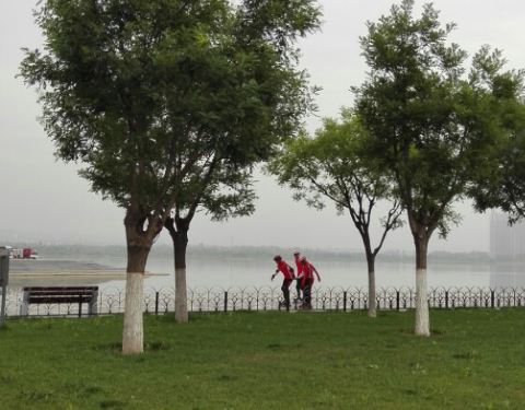 文瀛湖水库挨着大同博物馆,公园不太大,人也不多。