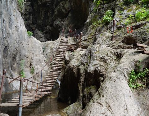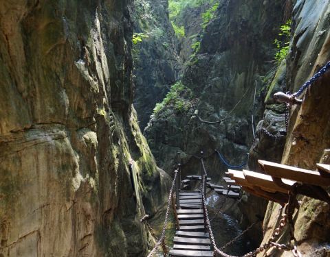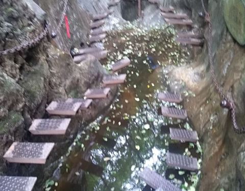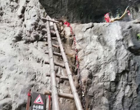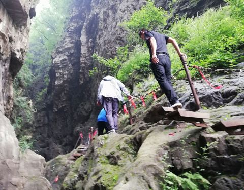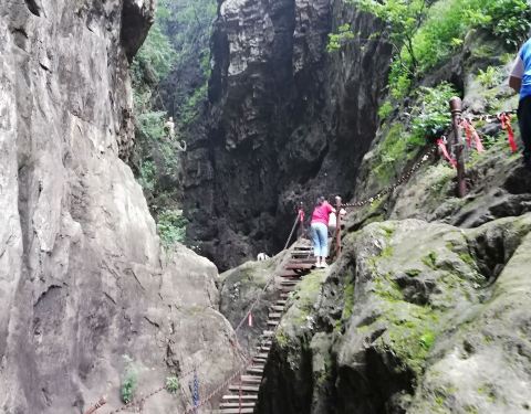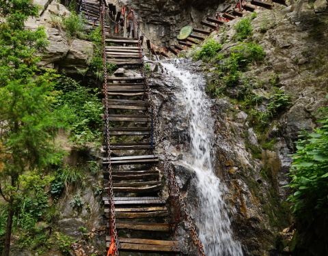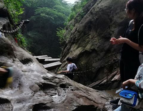 颇具挑战性的地方,体力好的朋友来一定要试试,这里上山的路很难走,依靠钉在山石上的铁条或者并不平稳的软梯子向上,一定要握紧铁链注意安全的前提下去体验攀登的乐趣,一路上有潺潺的流水相伴,众多的小瀑布不时还会让鞋子湿个透。