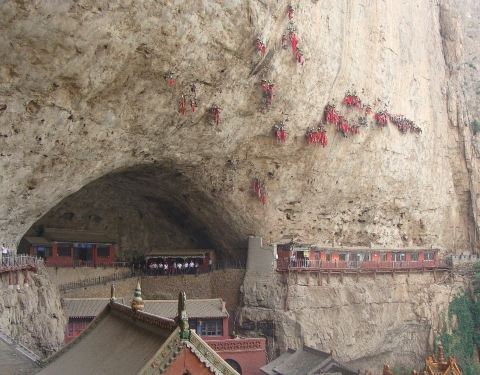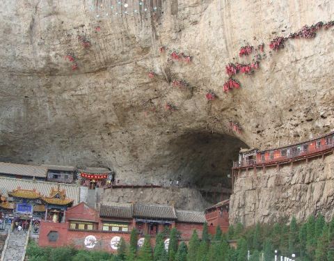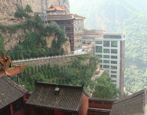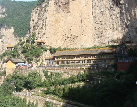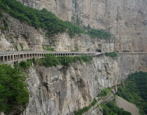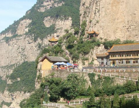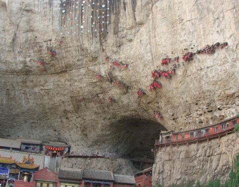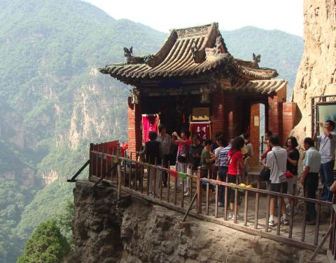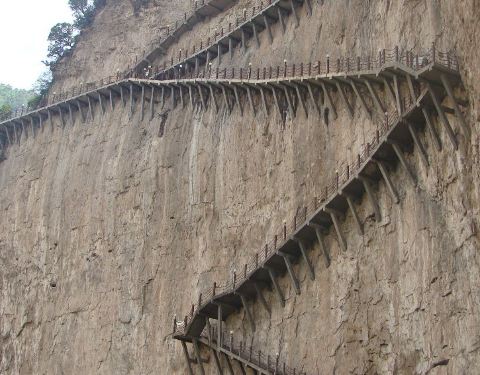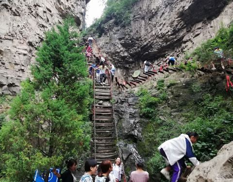 绵山风景区内的一个景点,非常具有挑战性和刺激性。抓住铁链踩着木板往上爬,非常考验体力和勇气