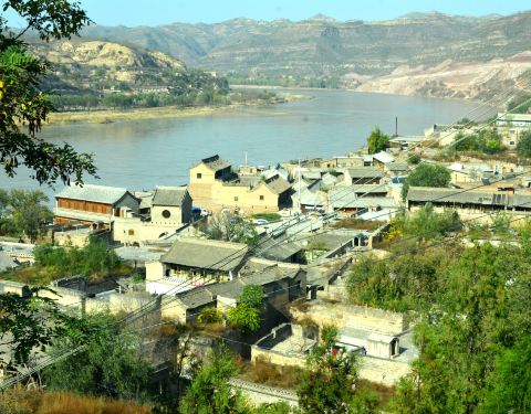 位于晋陕边界的碛口镇背依吕梁山,面对黄河,碛(音qi)的字面解释有几种,其中之一是浅水中的沙石,沙石浅滩。这里从地形上看黄河滚滚而来,在这里拐了一道弯,宽宽的河面到这里突然收窄,同时出现了一个礁石滩,称麒麟滩,丰水时,见不到礁石,只能见到黄河水在暗礁滩上冲撞出的水花,无法行船,麒麟滩有一向左的转弯,称湫水河,是黄河支流,与内地相通,黄河上载满货物的船只到此无法前行,只能在碛口这里卸货,转为陆路运输,从清代乾隆年间开始,此后的200多年里都是中国北方著名的商贸重镇,也是繁华的水陆码头,当时民间有“驮不尽的碛口,填不满的吴城”“栓起骡子跑碛口”之说,这里是水旱码头小都会,九曲黄河第一镇,也是联通内蒙、陕西、山西的重要交通要道。这里有古镇、古刹、古渡。