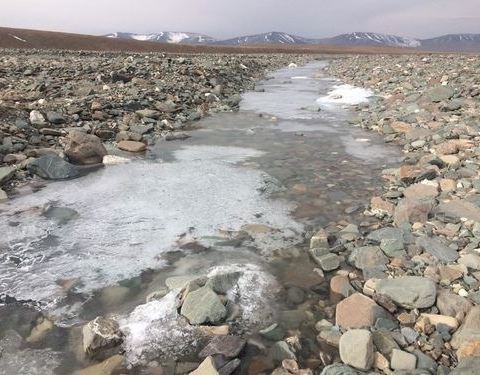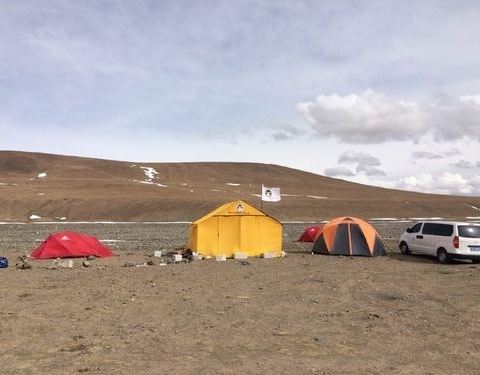 玉珠峰大本营在三江源保护区里面,实际上就在玉珠峰南坡下的一个河滩上,冰川从玉珠峰上缓缓滑下,顺着山势向下运动到河滩,形成一条条河沟。登玉珠峰的登山者一般都会在此停留一至两天。