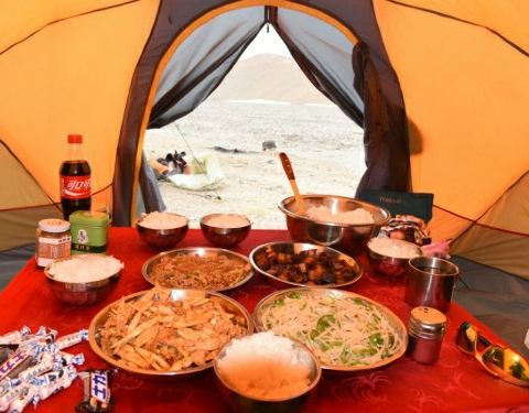 我们终于抵达5050米的玉珠峰登山大本营,营地的帐篷里特意准备了丰富的水果和坚果