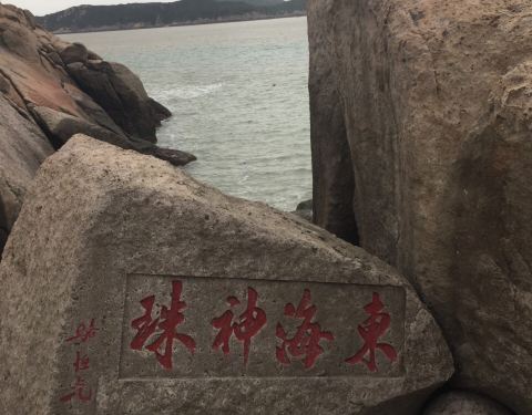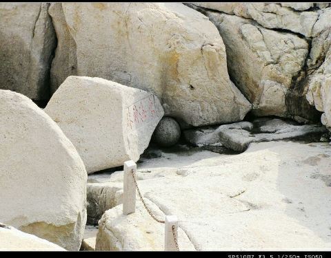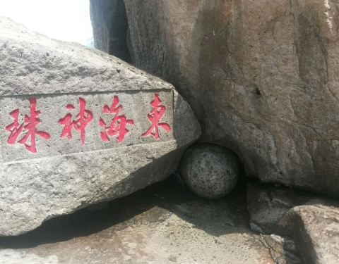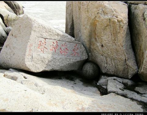 是在海边的一课大圆石头,上面写着东海神珠四个大字,小孩子很喜欢,不知道是不是天然形成的还是人工合成的是在海边的一课大圆石头,上面写着东海神珠四个大字,小孩子很喜欢,不知道是不是天然形成的还是人工合成的。上面还有黄药师山庄,可以去看看哦。