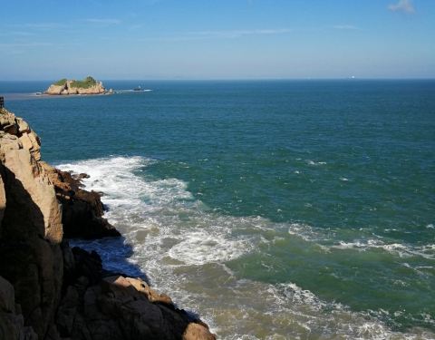 远眺大海,水天一色,心旷神怡去嵊泗游玩,和尚套景区是不可错过的地方,本想早起去那看日出的,可惜起晚了,不过 初升的太阳撒在海面上还是好美的。远眺大海,水天一色,心旷神怡