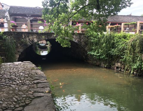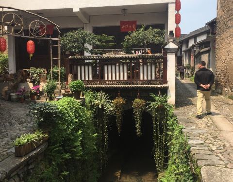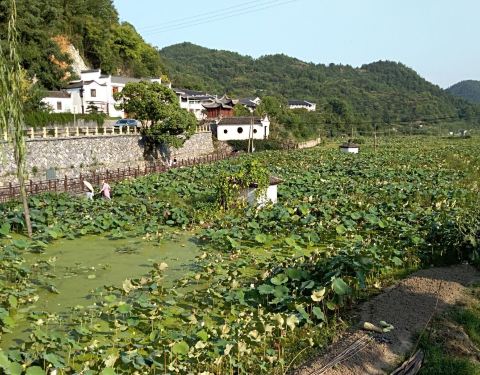 门口一片荷塘,村子里都在改造,到处是建筑材料,房子很有特色,确实有水溪从屋下流过,有一点的特色,但是没有惊艳的感觉。也许改造后会更美