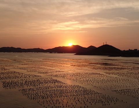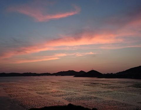 感觉比枸杞岛那边的原生态一些,大概因为游客少些,污染就少点吧,这边的海上牧场也更壮观,特别说日落时分,景色相当棒,据说夏天有火烧云更赞