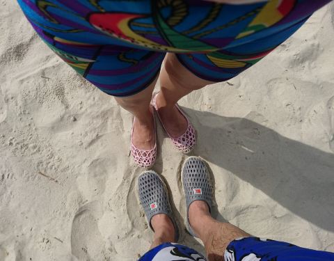 被出租车司机师傅带去玩了一个小时,水还算干净,娱乐项目开发一般,就是带娃玩水,捡贝壳,踩沙滩的胶鞋好脏,要不是水凉都不愿意穿,在那丢了钱包心情变得很糟糕~