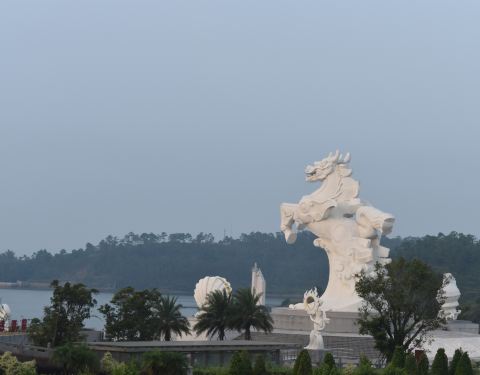边陲明珠,去东兴口岸路过,在西湾跨海大桥的中间,可以停车,景点和停车均免费。 马路对面是龙马精神景区,龙马精神是龙头马身的雕像。早晨两处以及大桥一端看海别具特色,海天一色。