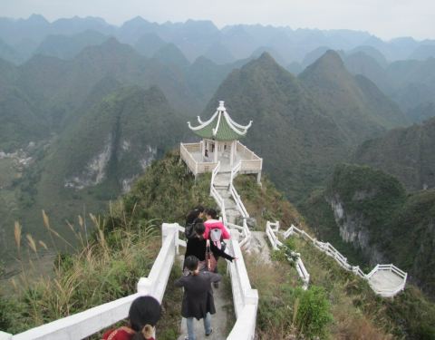 《河池天下第一弄》群峰凹地称为弄,世界最深七百弄,海拨垂直六百米,十里幽峽甘房峒。廿七瑶家居洼底,千百石阶下首弄,土木水火贵如金,金石仙境廿房峒。