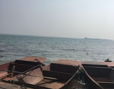 水库面积很大,而且有好多人在水库玩水,很凉快,也有钓鱼的,很舒服