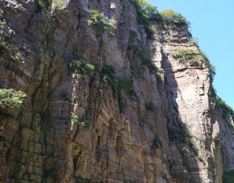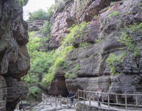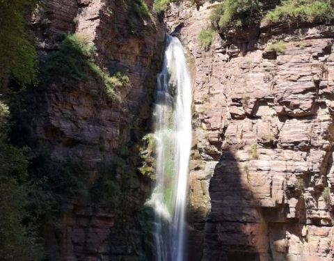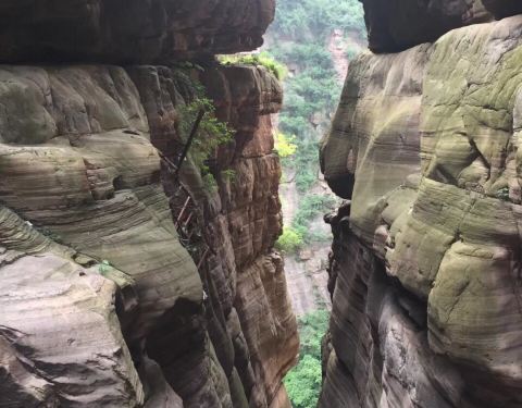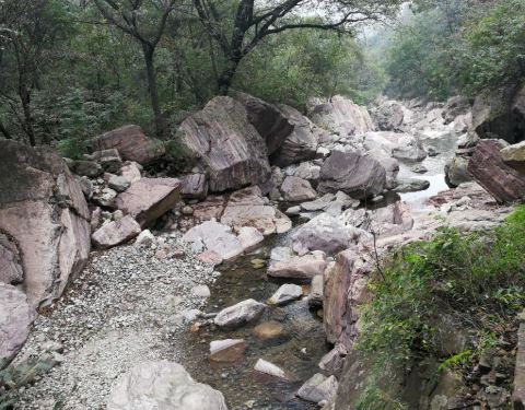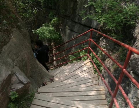 被称为“清幽山乡”的南坪,是万仙山地质宝库。幽深的小路,清新的空气,飞瀑直泻而下,真是赏心悦目。从郭亮村乘观光车至南坪,再叫了辆车送至丹分沟,一路直向下游览,地质地貌很特别。